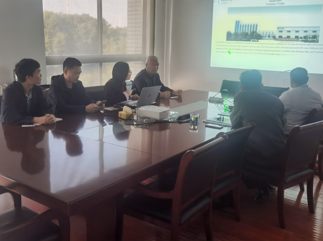 Selepas lawatan itu, kedua-dua pihak mengadakan pertukaran teknikal yang mendalam di bilik persidangan Jentera Huadong. Semasa mesyuarat itu, Huadong Machinery mula-mula memperkenalkan skala pembangunan syarikat, peralatan pengeluaran, kes kejuruteraan, dan lain-lain, dan kemudian memperkenalkan secara terperinci penyelesaian teknikal dan kelebihan produk seperti penghantar tali pinggang paip dan penghantar sudut besar. Pihak Thai menyatakan minat yang besar terhadap keupayaan inovatif Jentera Huadong dalam bidang ini dan percaya bahawa produk dan teknologi ini mempunyai prospek aplikasi yang luas dalam projek pengubahsuaian loji kuasa haba Thailand.